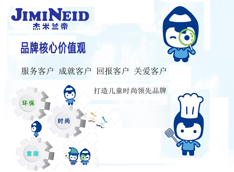 杰米蘭帝童裝,提供“健康、時尚、輕柔、環(huán)保、舒適”的四季著裝方案。在品牌發(fā)展過程中,大力實施品牌戰(zhàn)略,通過電視、廣告、舉行大型的小模特比賽、促銷專場活動,網(wǎng)絡(luò)推廣等品牌宣傳方式,致力于創(chuàng)立兒童服飾文化,注重產(chǎn)品品位的提升和品牌整體形象的提高。目前,杰米蘭帝已成功打入全國各地市場,開拓發(fā)展品牌的價值,使杰米蘭帝成為國內(nèi)童裝行業(yè)最具影響力的品牌。