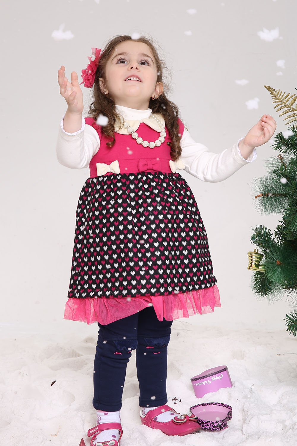 潘潘領桃心連衣裙+加絨打底褲