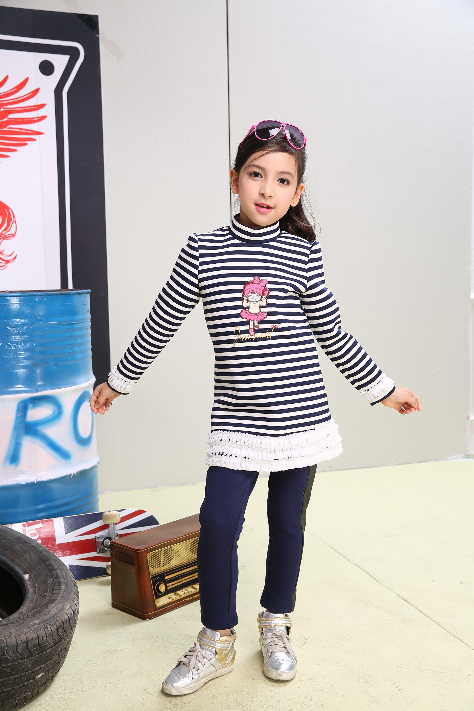 輕時尚條紋,,小蘭帝可愛童年的微笑,俏皮可人,搭配清透的加絨的暖暖長褲,濃濃的文藝格調。