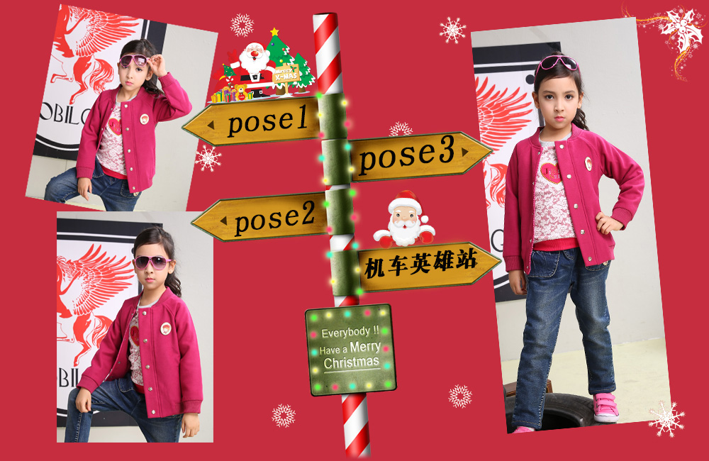 配合12月假期“雙旦”,電視上,雙旦都是喜氣洋洋,不止有圣誕公公,更少不了一件喜慶的暖衣,而且,必須是紅色。有色有彩有喜氣,穿件萌噠噠的杰米蘭帝外套,內(nèi)搭加絨的厚T恤,輕便之余不失童真。另外,若在寒冷國度,小朋友也可搭配圍巾,應(yīng)景又保暖,十分實(shí)際。