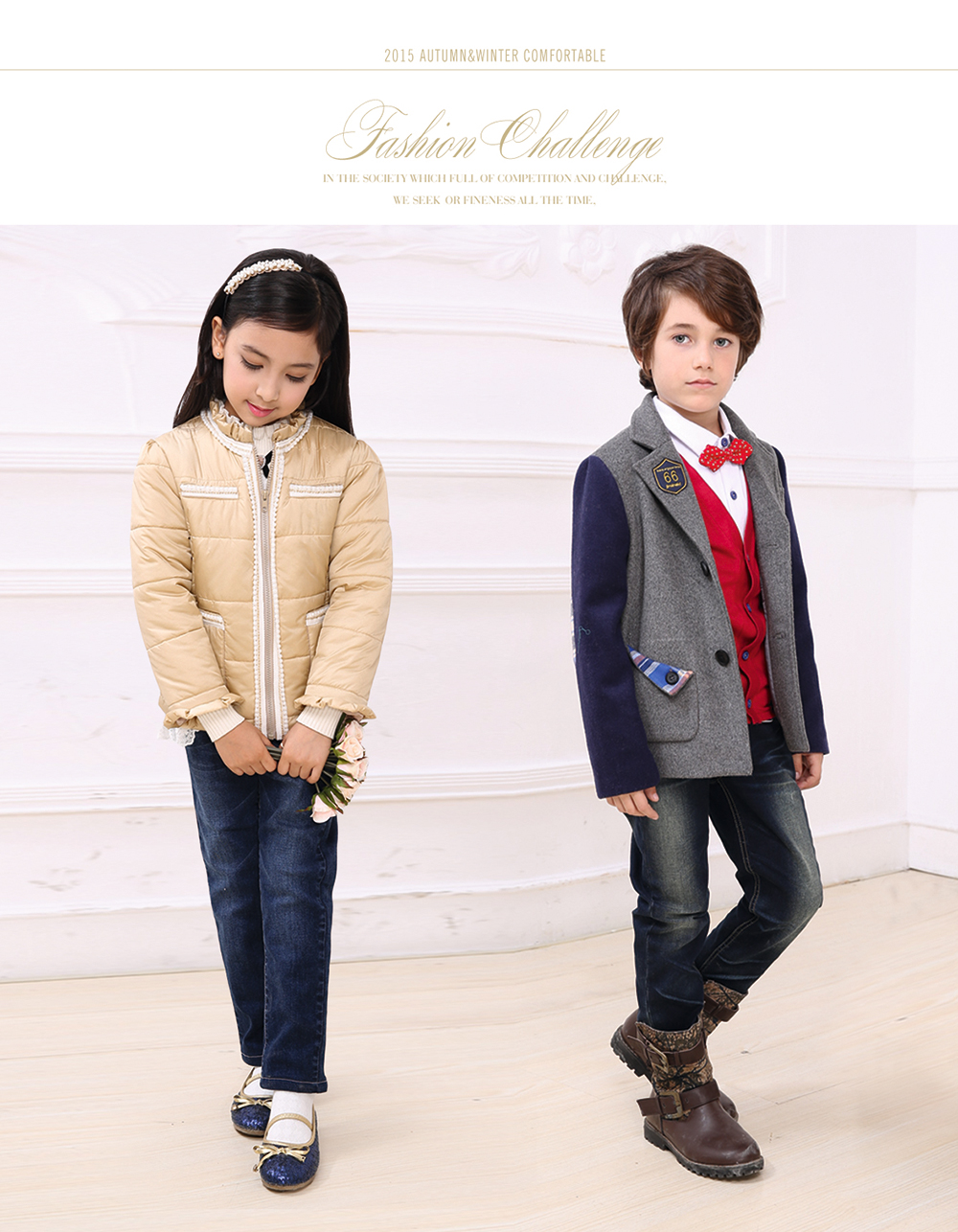 童裝的面料選擇不論女童裝還是男童裝,在面料的選擇上具有一定的特殊性,尤其在舒適、柔軟、輕盈、防撕、耐洗等方面要求很高。特別是近來童裝朝休閑方面發展,更需要吸汗、透氣、刺激性小的柔軟面料.棉質面料主要是其舒適、吸汗等優點,有益于兒童的身心健康,棉質服裝已成為了童裝的主要面料,這正是杰米蘭帝在面料上甄選后最終選擇。