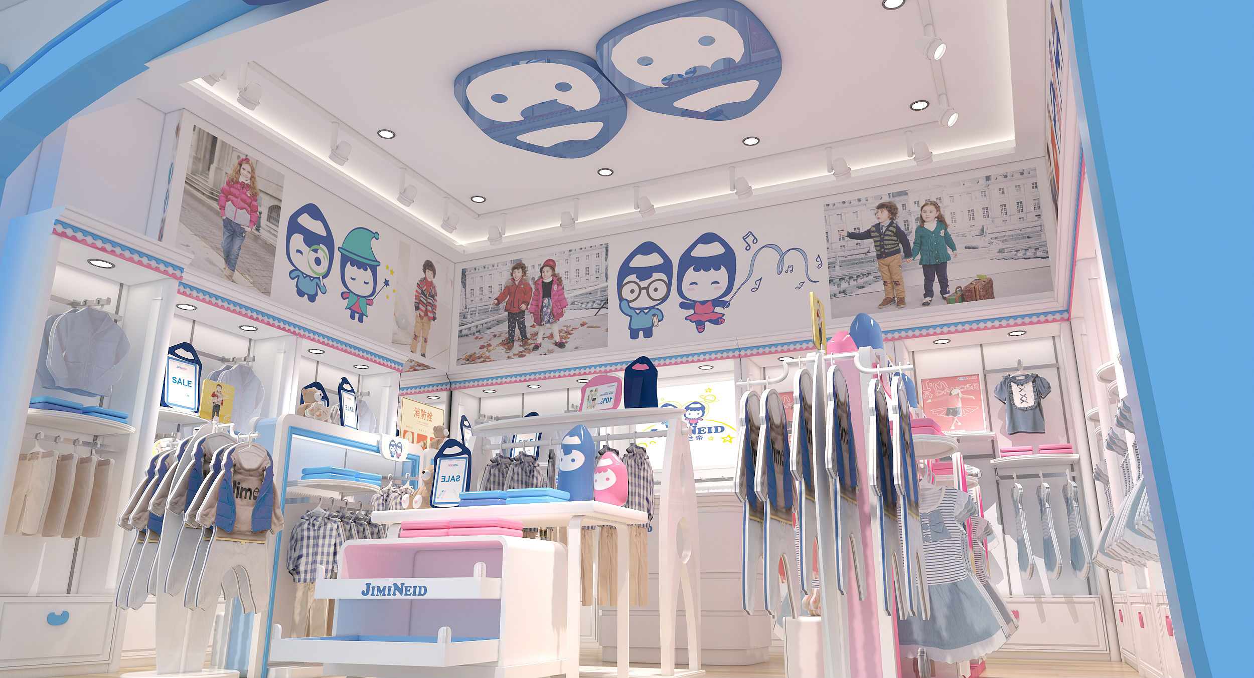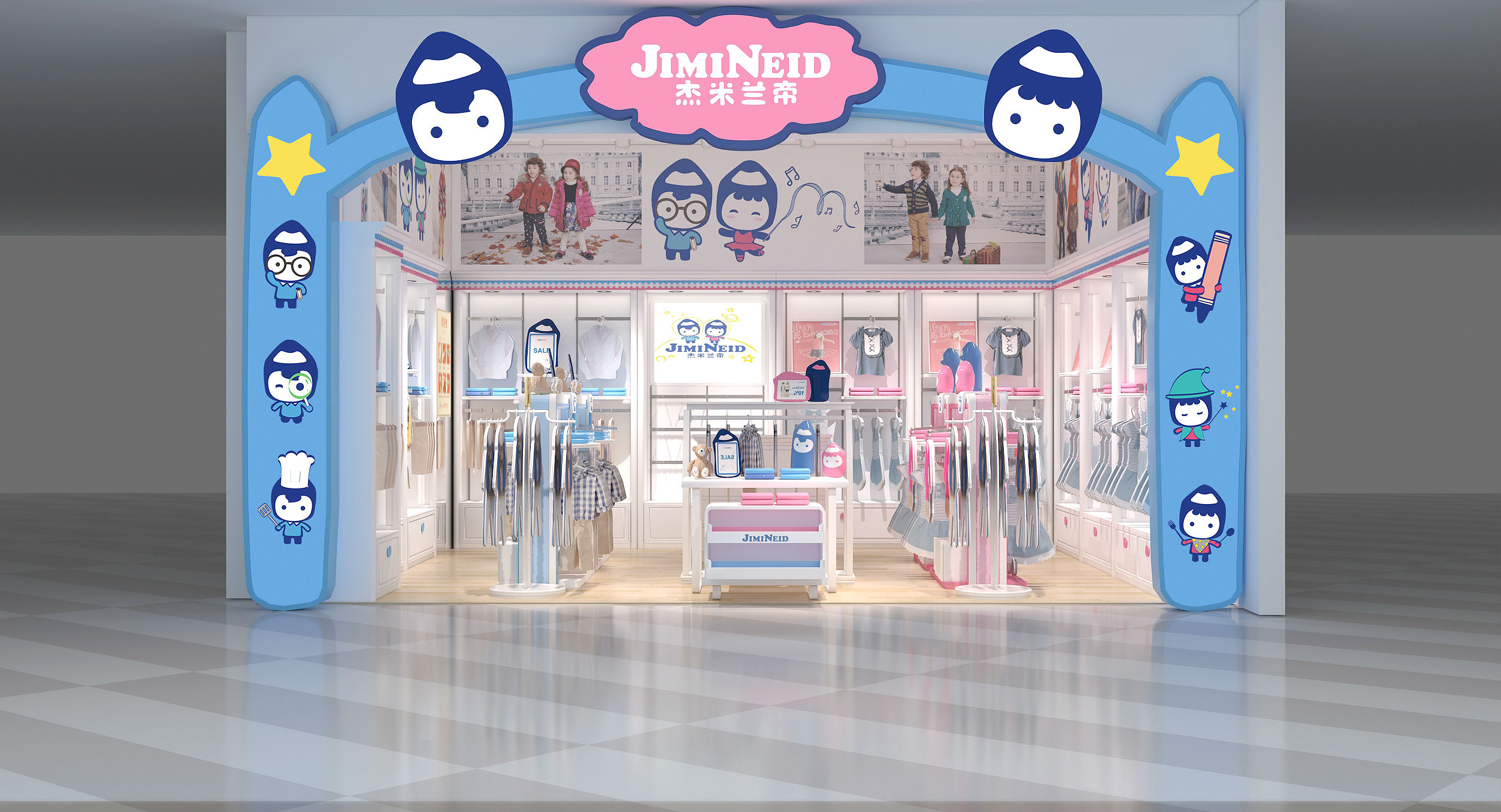 杰米蘭帝特色風格設計運用了品牌頭像杰米蘭帝門面,展示出可愛可趣的設計式樣,店面的外觀門面直接表達了品牌的經營方向和文化理念。店面的總體色系,燈軌,中島柜,貨架的陳列根據店面進行恰如其分的分配著,墻面海報在射燈的照射下顯得更加明亮,展示的更加完整,店面的設計式樣圍繞孩子童真、趣味、玩樂的天性,更是深入的結合了品牌的理念而設計。