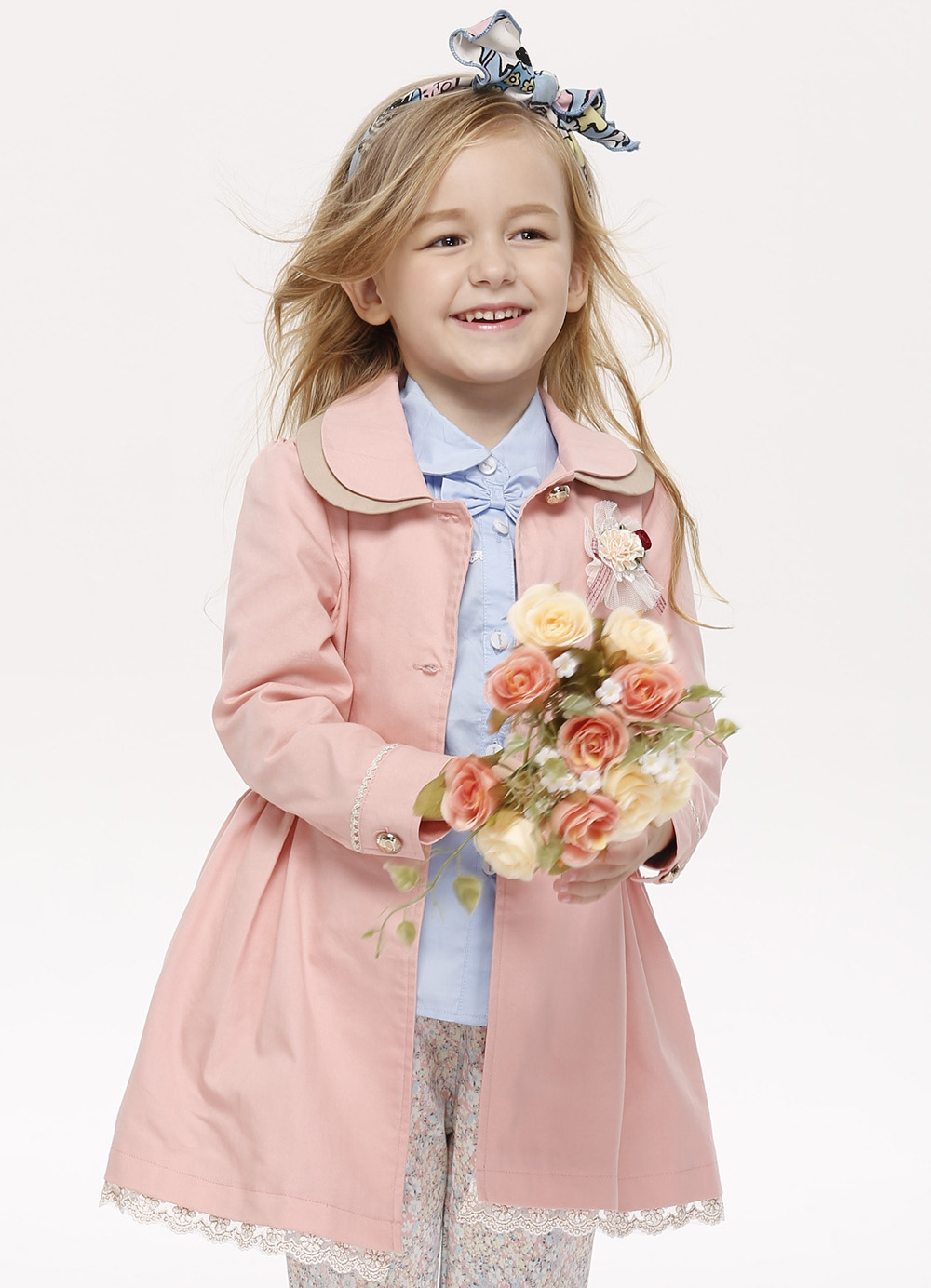 優(yōu)雅知性的風衣輕松提升小孩子的氣質(zhì),粉色都是少女時代的經(jīng)典色,這款粉嫩的色系各種顏色的內(nèi)搭都可以配。