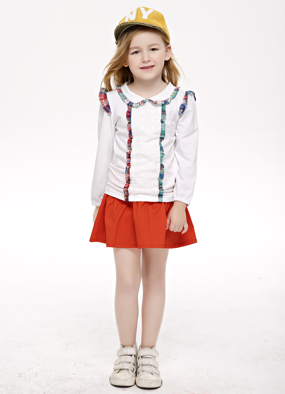 白色小飛袖配短裙柔美浪漫,白色果然是白搭。與橙色短裙和小白鞋搭配,彰顯清新活力,文藝范少女風。
