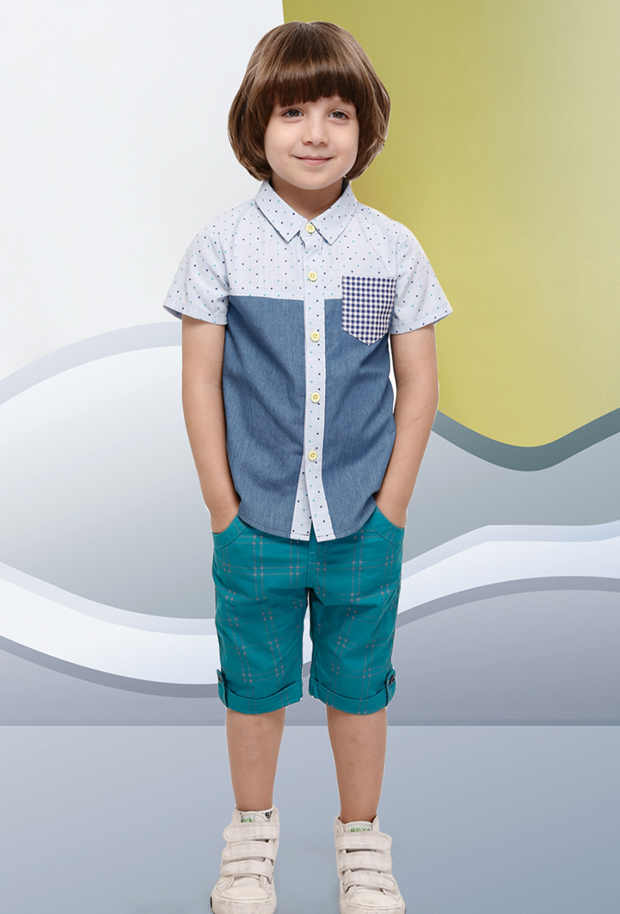 簡約波點短襯衫,搭配七分休閑短褲,襯出完美王子氣質!