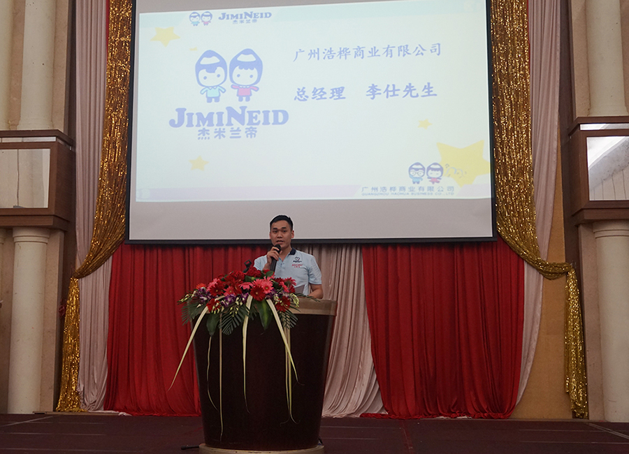 周年慶典上,杰米蘭帝童裝總經理李仕先生上臺致辭:今晚逢迎傳統的端午佳節,他首先代表杰米蘭帝童裝品牌的全體成員,向在座的公司領導、嘉賓、我們杰米蘭帝、迪森的伙伴表示感謝,祝闔家幸福!很高心今天可以在公司成立9周年慶典上,與大家分享我們杰米蘭帝童裝品牌的發展方向及經營計劃。