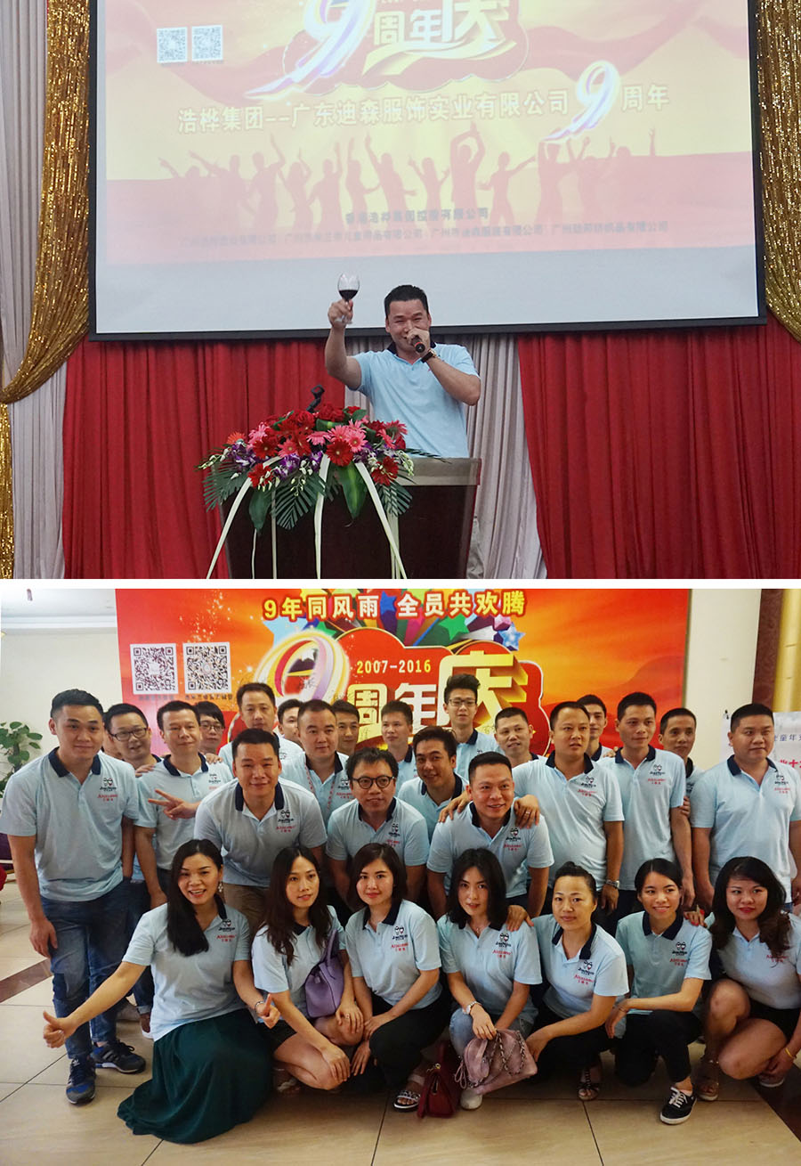 2016年6月9日端午節當天在廣州增城新塘賞鯉苑迎來了杰米蘭帝童裝&迪森服飾實業有限公司9周年慶典,隨著激昂的開場舞蹈《開門紅》,迪森服飾羅董致辭,300多人集聚一堂,共同祝愿杰米蘭帝童裝&廣東迪森服飾實業有限公司9周歲生日!