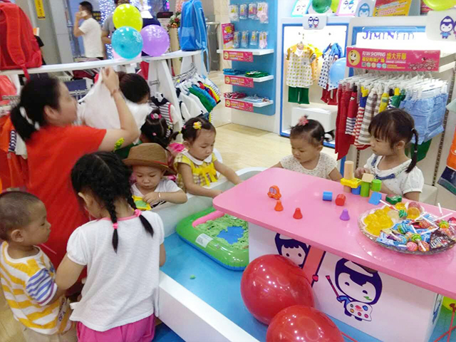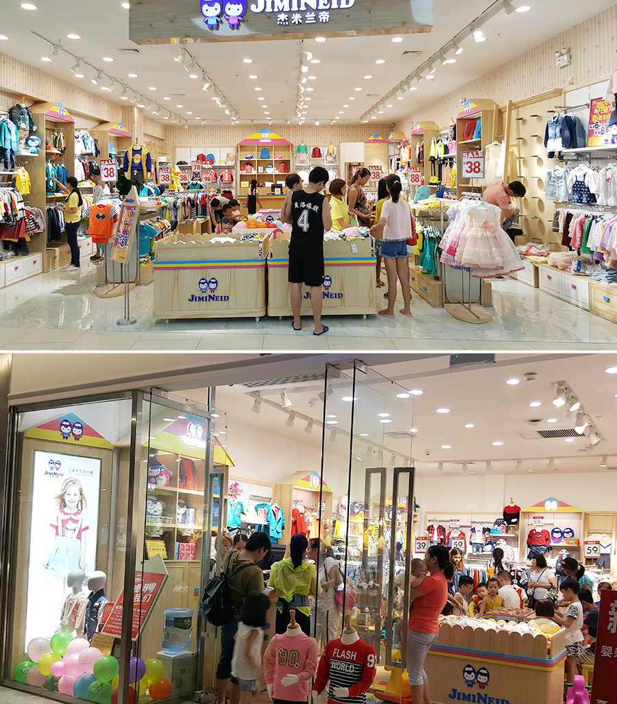 “杰米蘭帝/JIMINEID”快時尚童裝品牌較其他童裝品牌裝修特點:獨特的建筑裝修,色彩亮麗吸人眼球、布置有序、營造兒童嚴重的夢幻世界,杰米蘭帝童裝全新形象設計的專賣場內設游樂區哦,為孩子們提供最歡樂的趣事場地,讓粑粑麻麻們放心購物還能和孩子們來場親密的親子互動,讓孩子們的童年充滿樂趣!