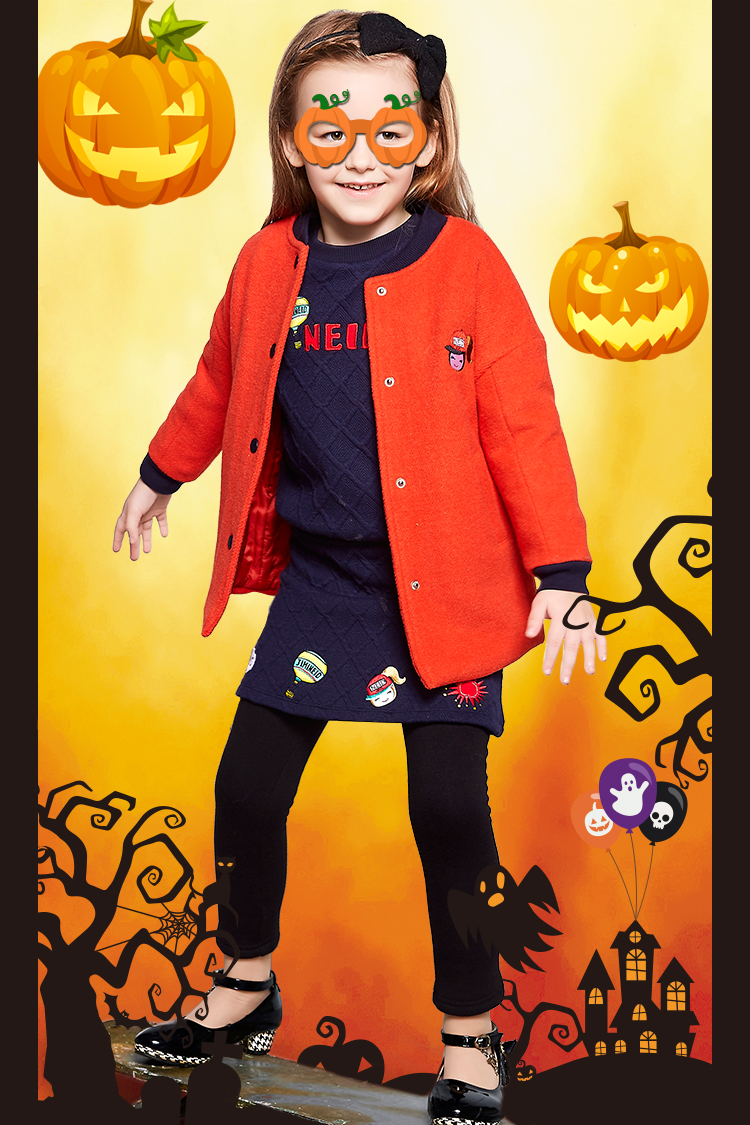 溫暖柔軟的毛呢外套,穿出萬圣節的淑女怪異,橘紅色暖暖的就是給節日寶貝的大擁抱!