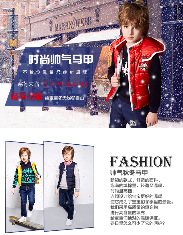 杰米蘭帝新款男童保暖羽絨棉帥氣背心馬甲外套,保暖御寒,是冬季必備單品之一哦,連帽設計給寶寶更好的溫暖,精致的品牌LOGO設計,時尚簡約,讓寶寶更加喜歡,穿起來也很帥氣有個性,我們采用精致面料,品質保障,呵護寶寶溫暖整個冬天。