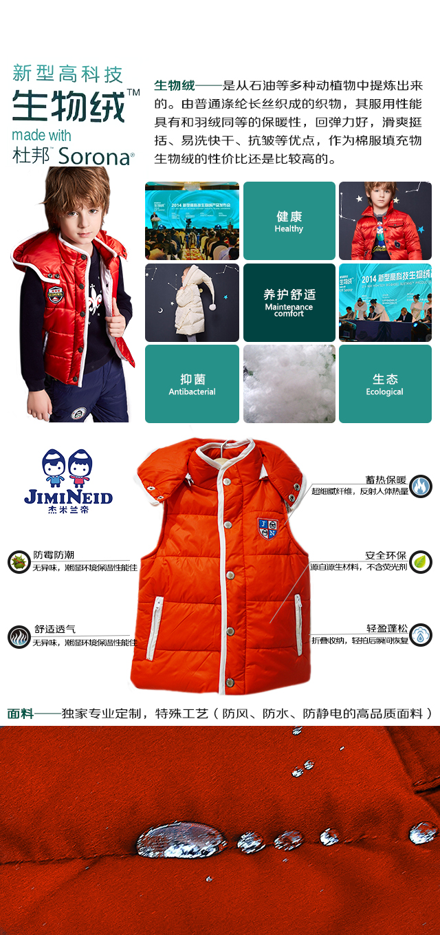 魅力過冬,保暖又不失風度,就首選杰米蘭帝新品羽絨服,我們羽絨服采用高含量的鴨絨填充物、生物絨填充物,其特性能具有良好的保暖性,回彈力好,滑爽挺括、易洗快干、抗皺,給寶寶們絕對的溫暖保證。