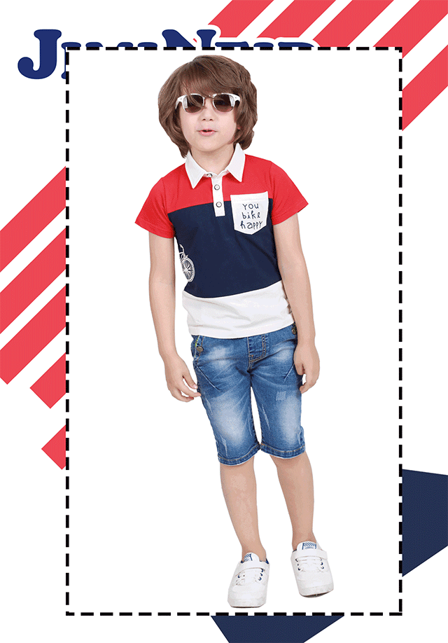 反領短T恤, T恤上以紅色搭配深藍色,