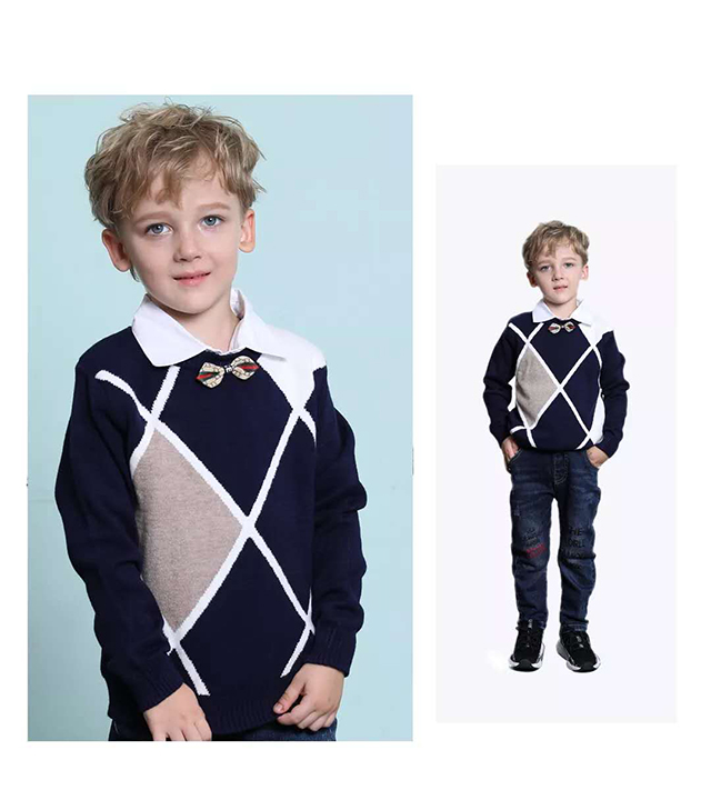紅色卡通圖案毛衣內(nèi)搭白色襯衫