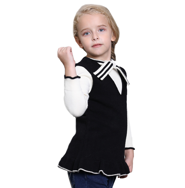 黑色背心短裙內(nèi)搭白色毛衣